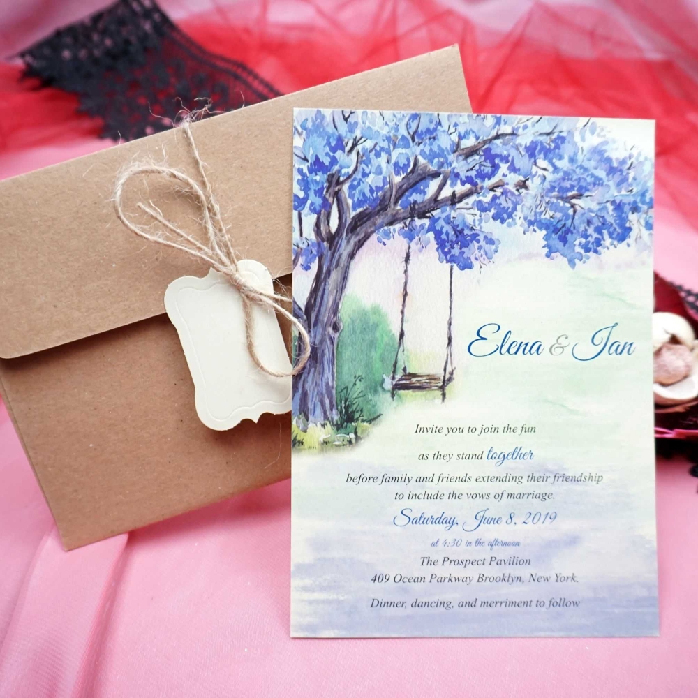Invitatii de nunta confectionate dintr-un carton lucios cu striatii destinat textului. Se introduce intr-un plic din carton reciclat si se leaga cu un snur accesorizat cu o eticheta destinata numelor invitatilor. Nu contine plic clasic.