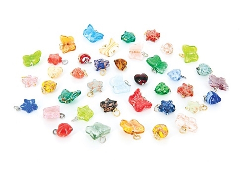 • Unele „perle” sunt înnobilate cu foiţă de aur de 24K sau cu foiţă de argint 925, altele prind viaţă prin deco­rarea cu murrine tăiate dintr-o baghetă de sticlă, realizată prin suprapunerea succesivă a unor straturi de diferite culori şi forme.
